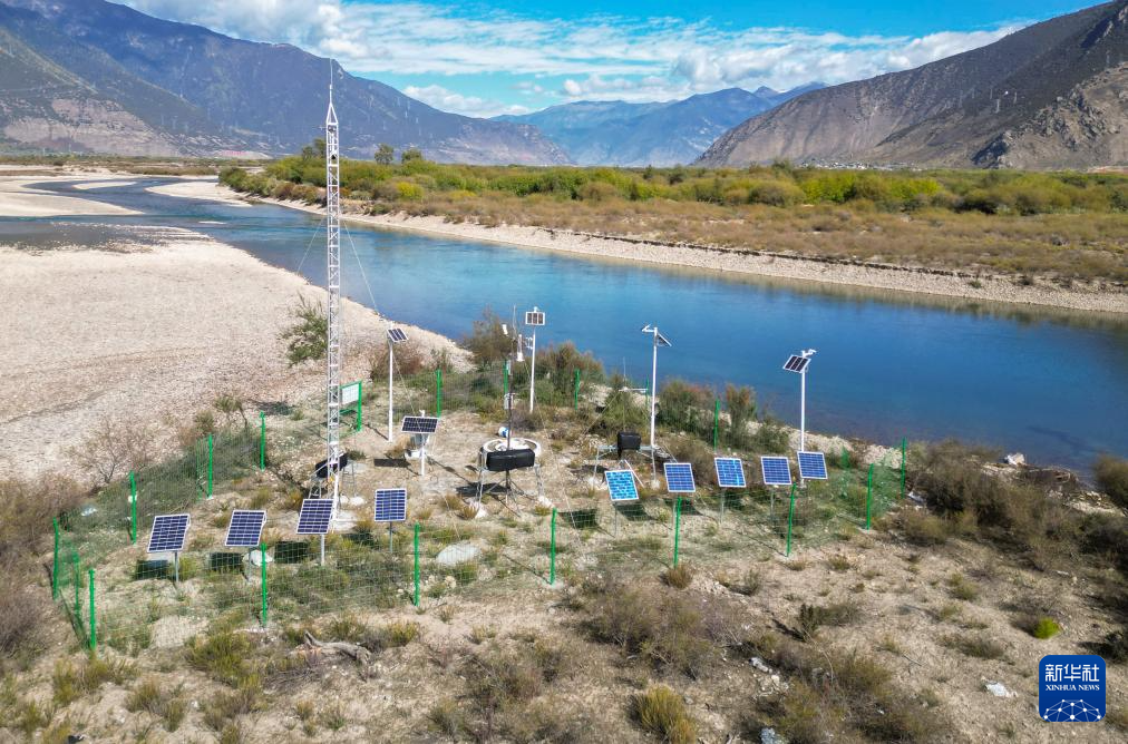 這是在林芝雅尼國家濕地公園尼洋河畔拍攝的生態監測系統(10月24日攝,無人機照片)。新華社記者 劉天宇 攝