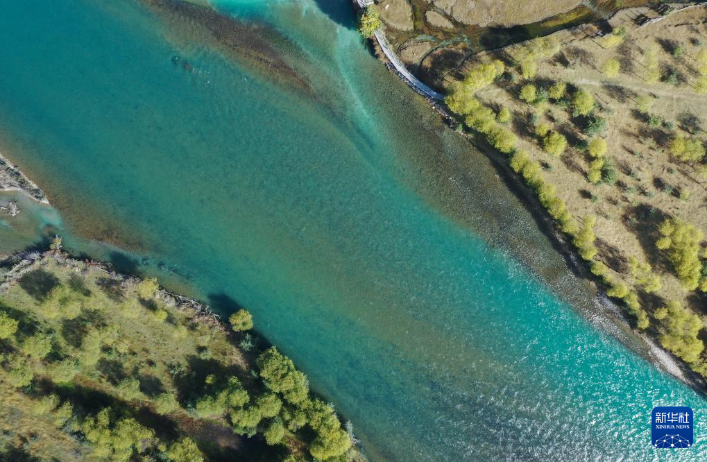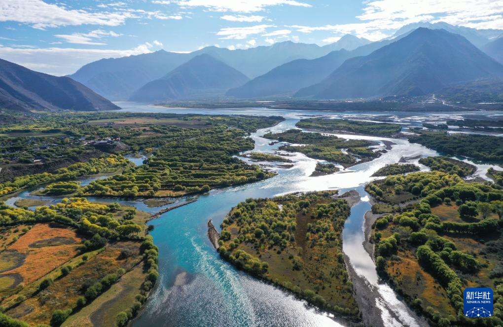 這是10月24日在西藏林芝雅尼國家濕地公園內拍攝的尼洋河(無人機照片)。新華社記者 李賀 攝