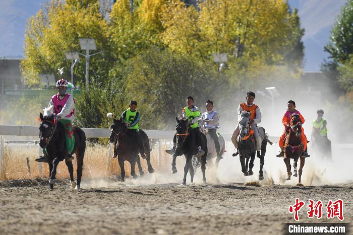 圖為西藏青少年民族傳統(tǒng)賽馬比賽現(xiàn)場。中新社記者 貢嘎來松 攝