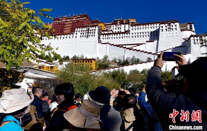 圖為11月1日,游客在布達拉宮德央夏廣場拍照。中新社記者 李林 攝
