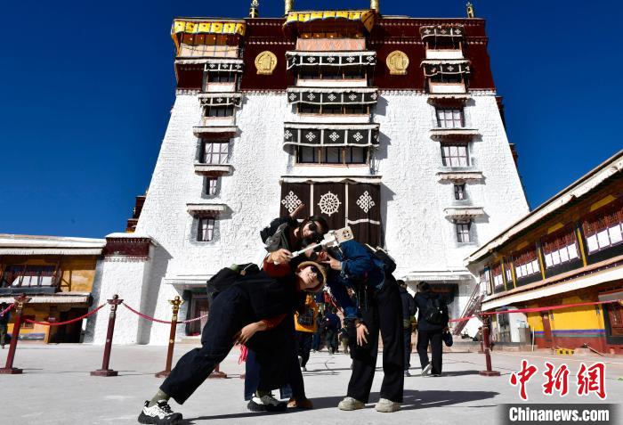 圖為11月1日,來自四川的信眾在布達拉宮拍照留念。中新社記者 李林 攝
