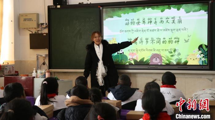 圖為西南林業(yè)大學(xué)科普團(tuán)隊(duì)成員為學(xué)生上生態(tài)科普課。那曲市林草局供圖