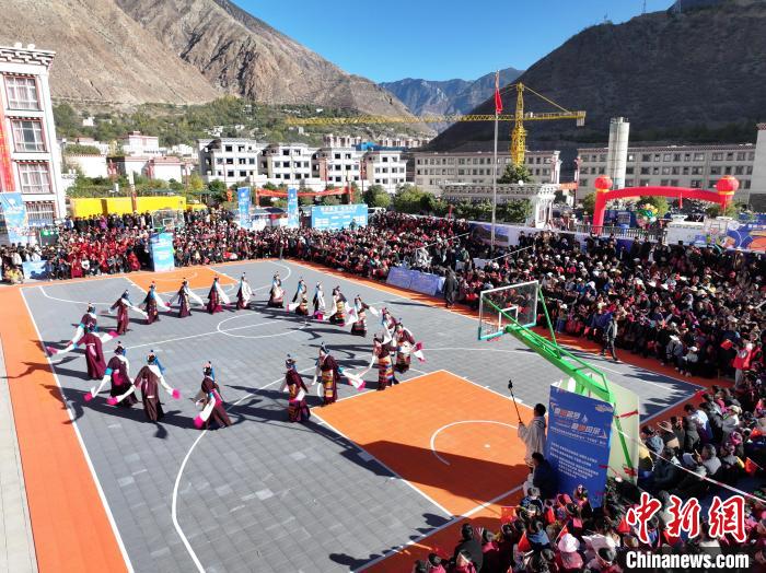 圖為西藏自治區首屆鄉村籃球聯賽2024“千年鹽田”“康BA”比賽前文藝演出。昌都市芒康縣委宣傳部供圖