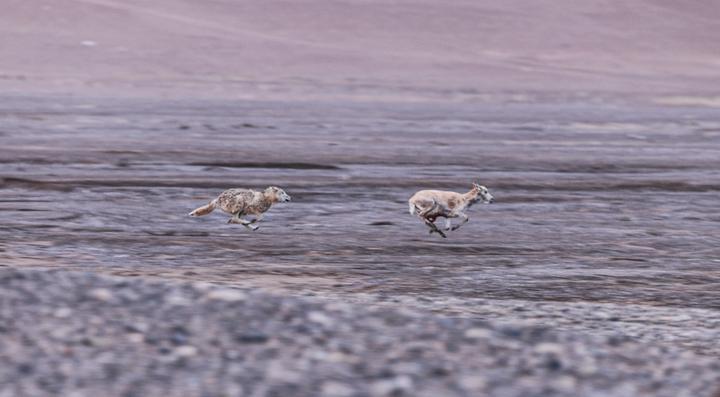 就在我們進(jìn)入到核心區(qū)的第三天傍晚,一只在藏羚羊遷徙路上等候已久的野狼撲向一只懷孕的母羊,咬向它的肚子和脖子。激烈掙扎的母羊掙脫后,竟然靠著最后的一點(diǎn)力氣跑向野管隊(duì)員的營(yíng)地。要知道懷孕的母羊是非常敏感而謹(jǐn)慎的,我在拍攝藏羚羊的時(shí)候,很少有機(jī)會(huì)能夠靠近到它們百米之內(nèi)。然而此時(shí),這只母羊卻奔向了我們,并倒在距離營(yíng)地只有二三十米的地方。