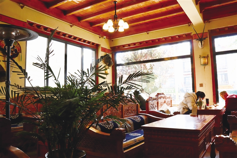實(shí)際上,拉薩城里遍布著許多甜茶館,這些小館沒有華麗的裝飾,沒有高昂的價格,甚至沒有顯眼的門牌。它們隱藏在拉薩的大街小巷中,面積不大、藏式裝修,有些老甜茶館內(nèi)桌椅都被盤“包漿”了,但這并不影響店里藏面的味道和甜茶的濃香。在拉薩,你總能在不經(jīng)意間發(fā)現(xiàn)一家不起眼的甜茶館,里面常常傳來人們的歡聲笑語。這些甜茶館不僅是人們填飽肚子的地方,更是拉薩人放松身心的溫暖港灣,承載這拉薩的文化。