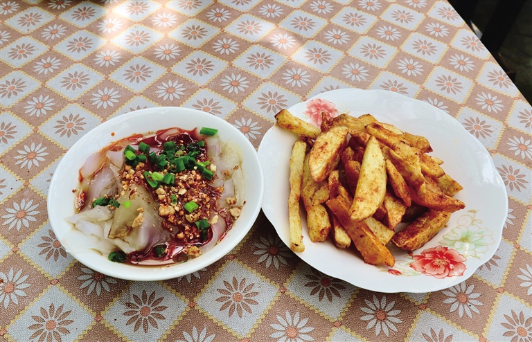 除了真實(shí)而美好的環(huán)境,涼粉店當(dāng)然以涼粉為主打。卡擦涼粉店的涼粉價格親民,Q彈爽滑的涼粉配上店家特制的辣椒,再撒上一層花生碎,看似簡單口感卻層次豐富,讓人回味無窮。除了涼粉,卡擦涼粉店還供應(yīng)炸土豆、涼面等具有代表性的拉薩小吃。嗦粉吃面的同時,能真正感受到日光之城的溫暖和花朵的治愈,這樣的美好體驗(yàn)可能就在你身旁的小店中。