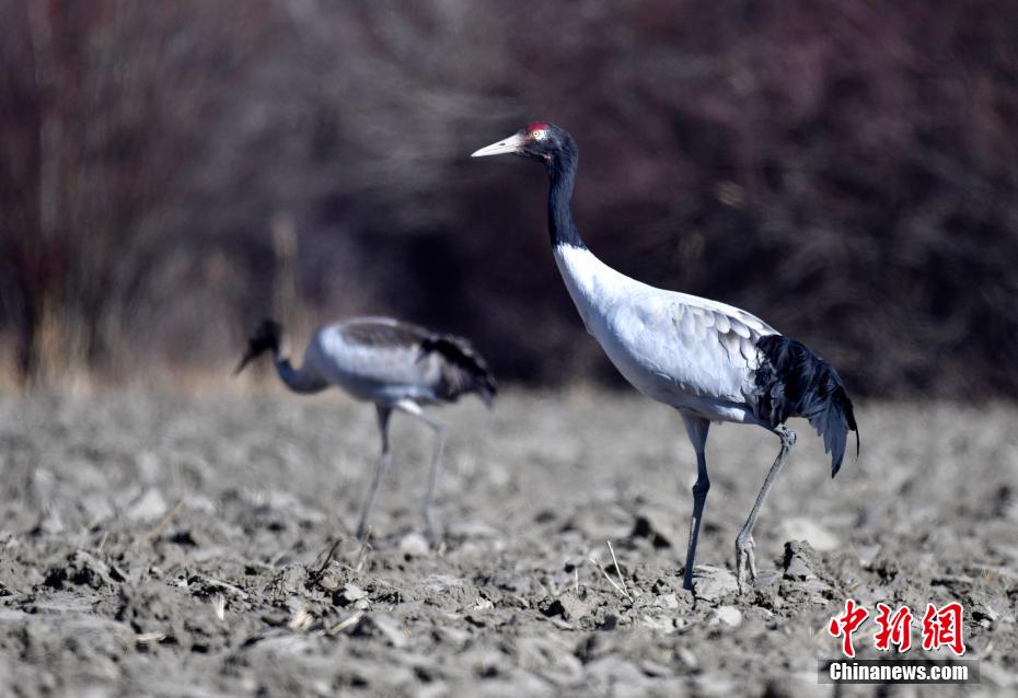 黑頸鶴是全球十五種鶴類中唯一在高原地區繁殖和越冬的鶴類,有著“高原精靈”之稱,屬中國國家一級保護動物。位于雅魯藏布江與年楚河交匯處的西藏日喀則市桑珠孜區邊雄鄉有著廣袤的農田和濕地,是黑頸鶴的主要越冬地之一。圖為11月20日,黑頸鶴在西藏日喀則市桑珠孜區邊雄鄉農田內覓食。