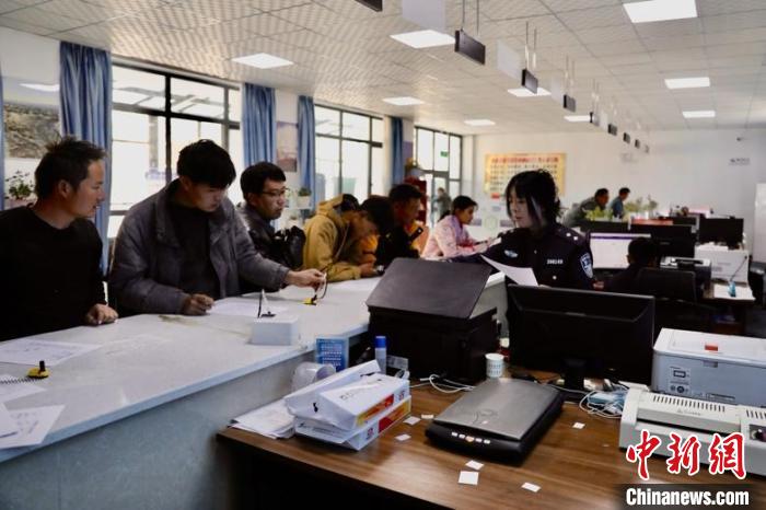 圖為西藏阿里邊境管理支隊札達邊境管理大隊辦證大廳內,民警正在為民眾辦證。陳孝東 攝