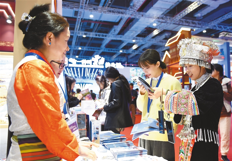 圖為參觀者在西藏展臺前咨詢。記者 旦增蘭澤 攝