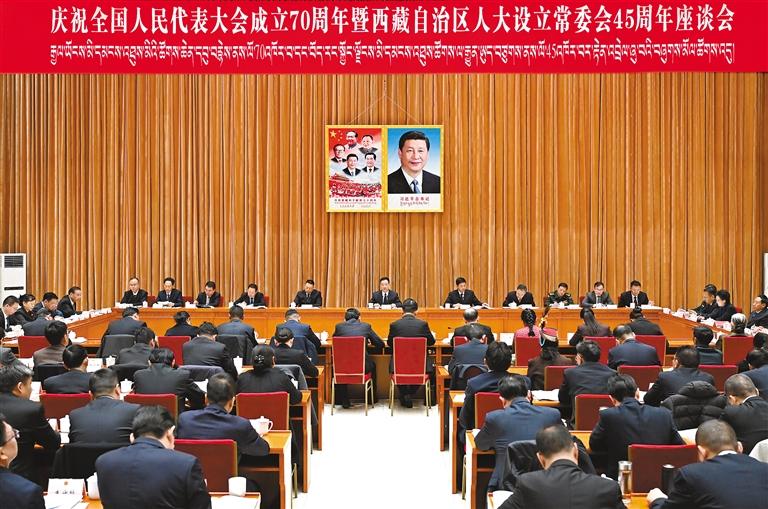 11月25日,西藏自治區召開慶祝全國人民代表大會成立70周年暨西藏自治區人大設立常委會45周年座談會。自治區黨委書記王君正出席并講話。 本報記者 李洲 攝