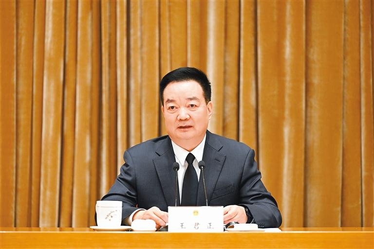 王君正在講話中指出,習近平總書記在慶祝全國人民代表大會成立70周年大會上的重要講話,全面回顧了黨領導全國人民建立和完善人民代表大會制度的光輝歷程,系統總結了實行人民代表大會制度的顯著政治優勢和寶貴經驗,深刻闡釋了新時代人民代表大會制度一系列理論和實踐創新重大成果,對在新時代堅持好、完善好、運行好人民代表大會制度提出明確要求,進一步豐富和發展了黨關于堅持和完善人民代表大會制度的理論,是一篇閃耀著馬克思主義真理光輝的綱領性文獻,為新時代新征程充分發揮國家根本政治制度作用、堅持和發展全過程人民民主、推進國家治理體系和治理能力現代化指明了前進方向、提供了根本遵循。
