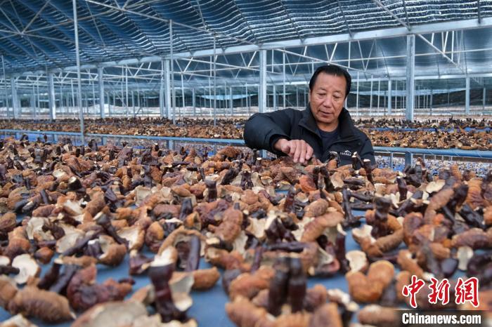 12月10日,西藏林芝米林市米林鎮紅太陽科技示范家庭農場負責人尼瑪查看靈芝風干情況。中新社記者 江飛波 攝