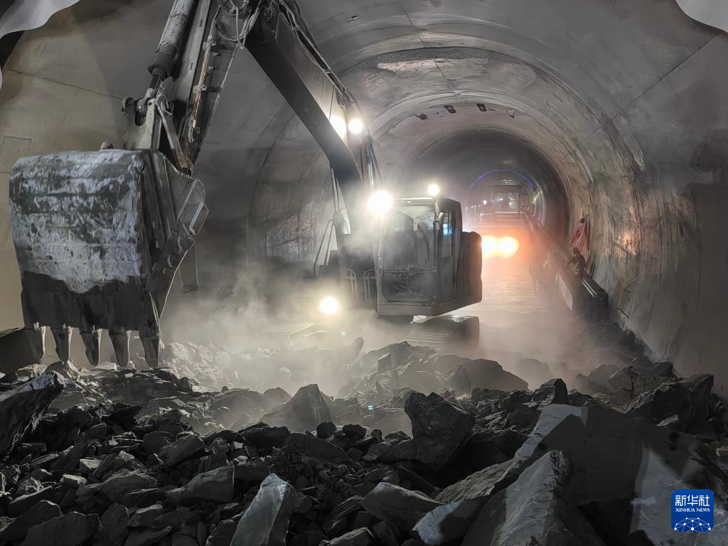 這是12月16日拍攝的然烏隧道主洞、導(dǎo)洞施工現(xiàn)場。新華社發(fā)(劉強(qiáng)攝)