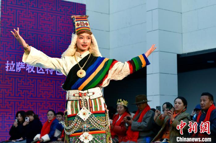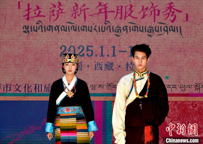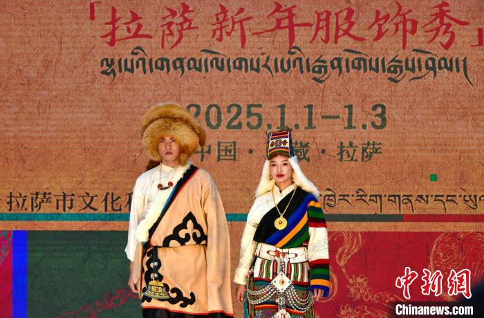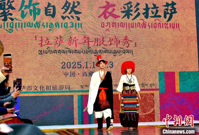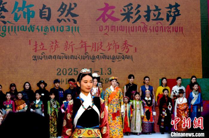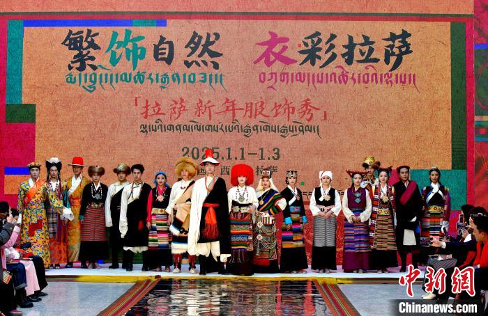 1月1日,西藏拉薩市文化和旅游局舉辦“繁飾自然·衣彩拉薩”新年服飾秀開幕大秀,通過拉薩代表性傳統服飾秀、少兒服飾秀、西藏元素創新服飾秀三部分展現藏地風情的同時,展現拉薩傳統與現代服飾文化的風采。圖為拉薩新年服飾秀現場。中新社記者 李林 攝
