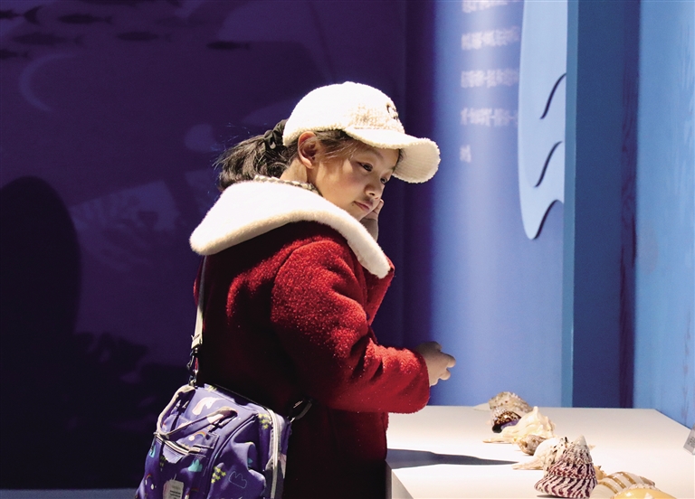 “我從沒一次性見過這么多貝殼,太漂亮了。”市民曲珍邊說邊用手指輕輕觸碰著允許觸碰的各類海洋貝殼,細細感受著貝類的紋理和質地。“這次展覽不僅讓我增長了見識,還讓我對海洋生物產生了更濃厚的興趣,這周末我要帶朋友一起再來看看。”