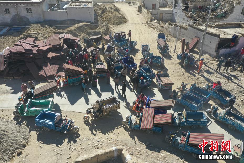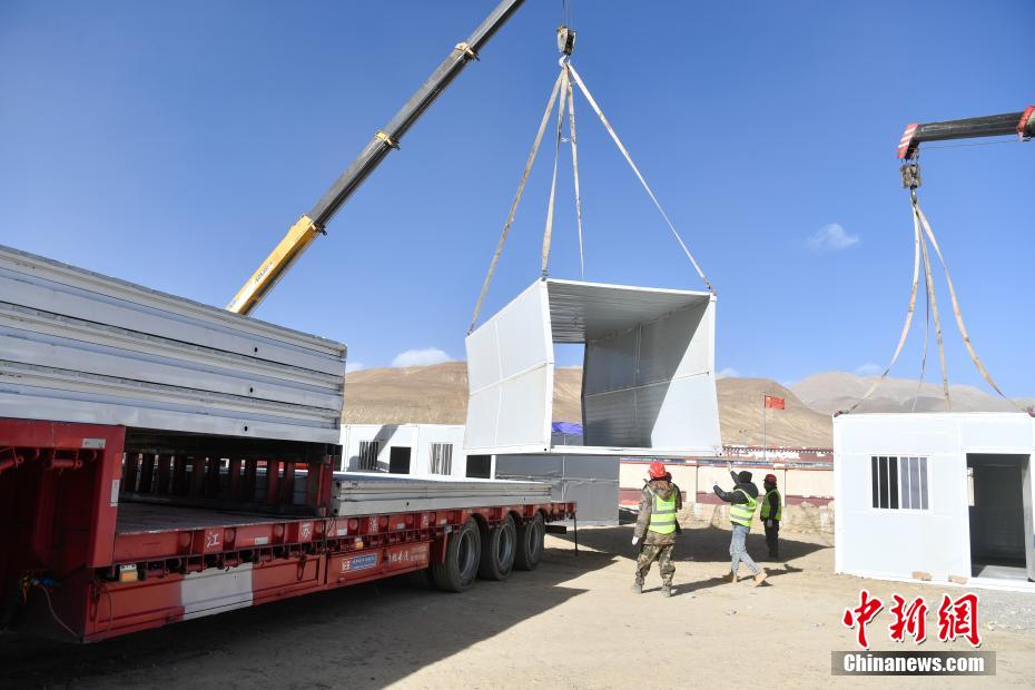 1月9日,西藏自治區定日縣曲洛鄉措昂村安置點,愛心企業為受災民眾搭建活動板房。當日,位于西藏自治區定日縣曲洛鄉措昂村安置點,西藏各級救援人員和愛心企業不斷轉運、發放生活物資、搭建活動板房、全力保障受災民眾的飲食供應等,保障受災民眾基本生活。中新社記者 貢嘎來松 攝