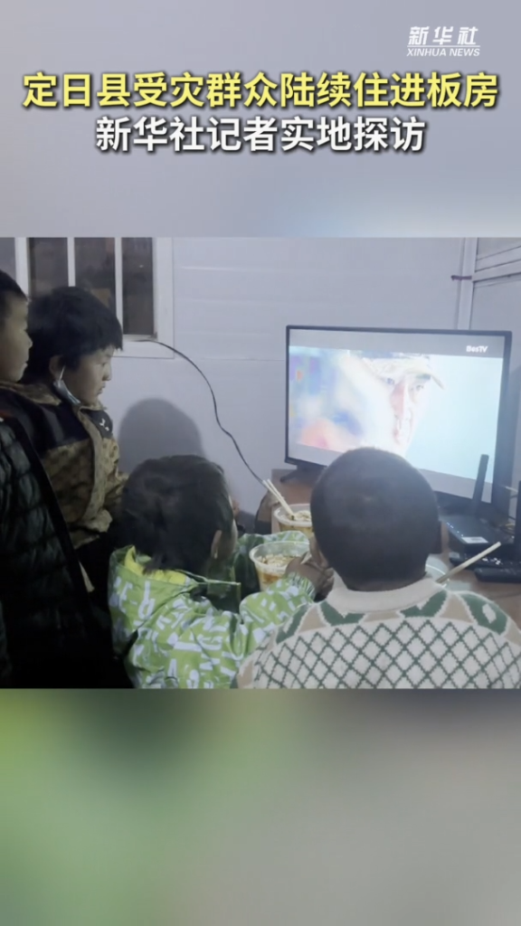 11日,西藏定日縣長所鄉(xiāng)古榮村板房安置點接通寬帶、IPTV網(wǎng)絡(luò)電視。孩子們圍坐在電視機前,說想要觀看電影《戰(zhàn)狼》。這是此次西藏定日縣6.8級地震災(zāi)區(qū)第一個接通有線千兆寬帶和IPTV網(wǎng)絡(luò)電視、實現(xiàn)Wi-Fi覆蓋的活動板房。