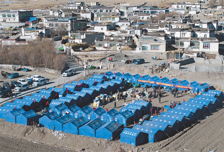 薩迦縣整體受災情況如何,薩迦縣委副書記于治花告訴記者:“截至1月10日中午,全縣受災最嚴重的4個鄉(xiāng)鎮(zhèn)共有3名群眾受輕傷,排查出不同程度受損房屋3957間,局部倒塌53戶,牲畜沒有傷亡。全縣共有26個集中安置點,其余群眾分散安置在各自的村里,帳篷基本實現(xiàn)一戶一頂,后續(xù)物資還在運送當中。”