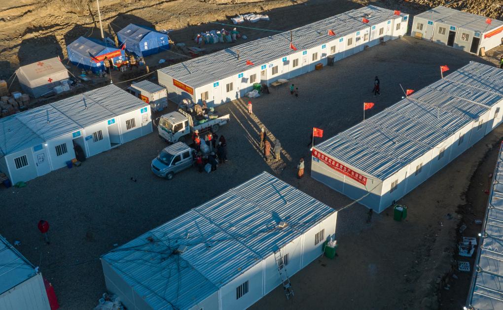 1月13日,在日喀則市定日縣長所鄉古榮村,受災群眾正在搬進板房。新華社記者 丁增尼達 攝