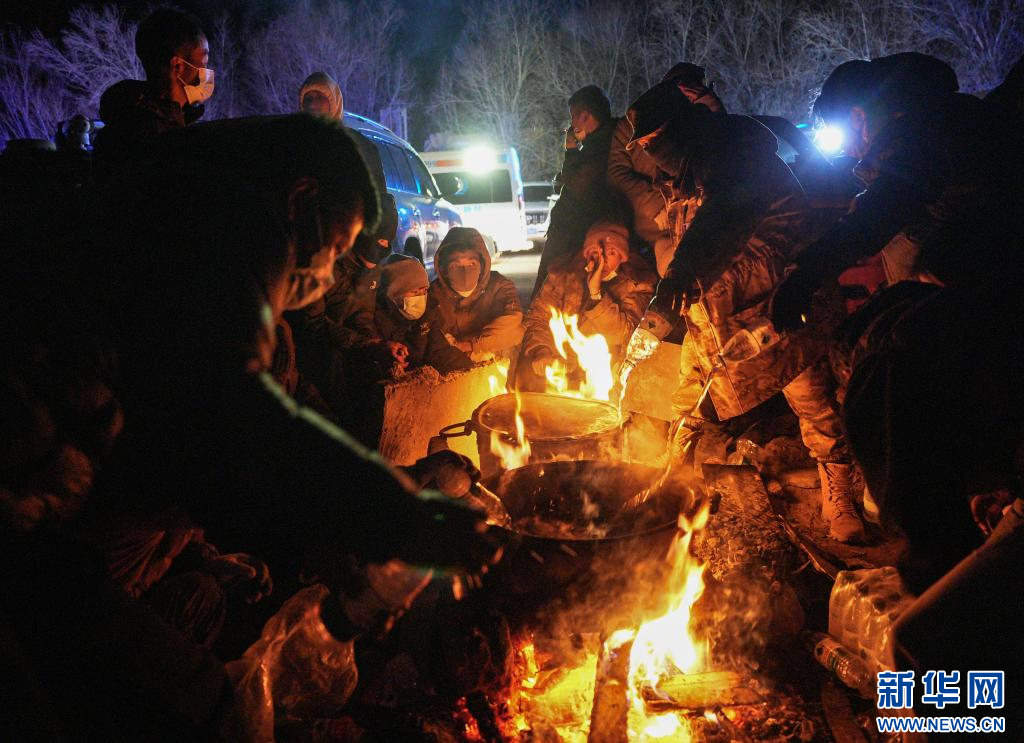 1月7日晚,長所鄉集中安置點的受災群眾在煮水準備泡方便面。新華社記者 晉美多吉 攝