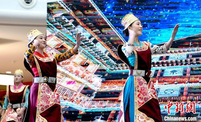 圖為西藏林芝第二十二屆桃花旅游文化節推介會(拉薩站)現場,身著藏裝的工作人員。李林 攝