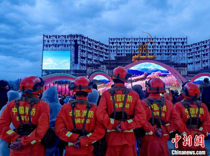 圖為消防員在林芝第二十二屆桃花旅游文化節開幕式上執勤。李國燾 攝