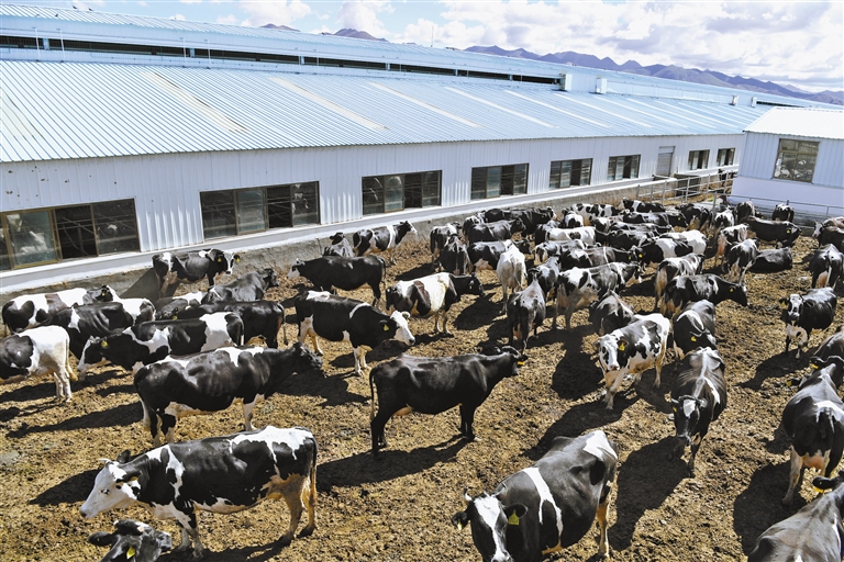 山南市隆子縣聶雄標準化奶牛養殖場。記者 李洲 攝