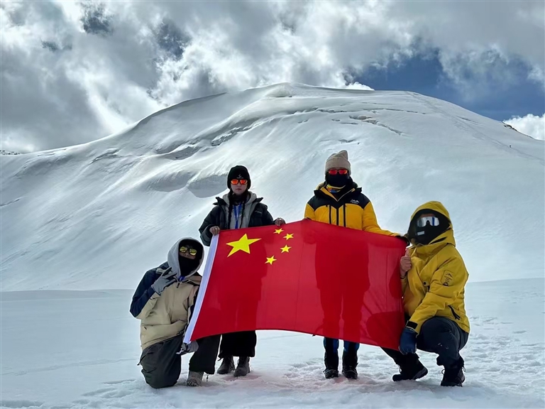 鄒師思告訴記者:“登山過程中,我們團(tuán)隊展現(xiàn)了高度的專業(yè)性與協(xié)作力。學(xué)院領(lǐng)導(dǎo)提前提供物資與精神支持,專業(yè)教練指導(dǎo)徒步與技術(shù)訓(xùn)練。在海拔5500—6000米段,隊伍統(tǒng)一行軍節(jié)奏,避免體溫流失或體力透支;登頂時,訓(xùn)練突出者率先觸頂,為體力較弱者提供鼓勵與幫助。”她感慨:“團(tuán)隊協(xié)作是登頂?shù)年P(guān)鍵,真正的勇氣源于科學(xué)準(zhǔn)備與戰(zhàn)略堅持。”