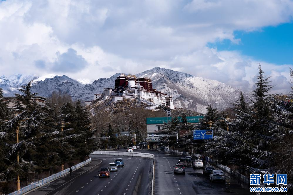 當日是農歷臘月初八,西藏拉薩市迎來降雪,城區銀裝素裹,雪景分外優美,吸引了眾多市民外出拍攝游玩。