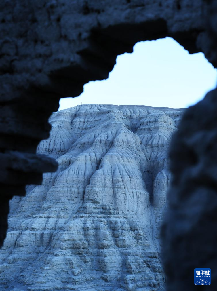 這是透過古格王國遺址殘垣拍攝的土林(1月30日攝)。新華社記者 關明輝 攝