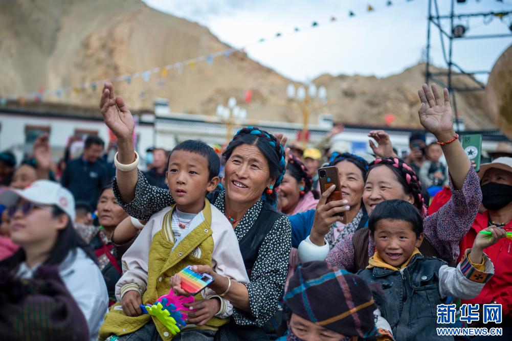 7月23日,在西藏定日2023珠峰音樂(lè)美食節(jié)現(xiàn)場(chǎng),民間藝術(shù)團(tuán)表演國(guó)家級(jí)非物質(zhì)文化遺產(chǎn)定日洛諧。新華網(wǎng)發(fā) 李騰 攝