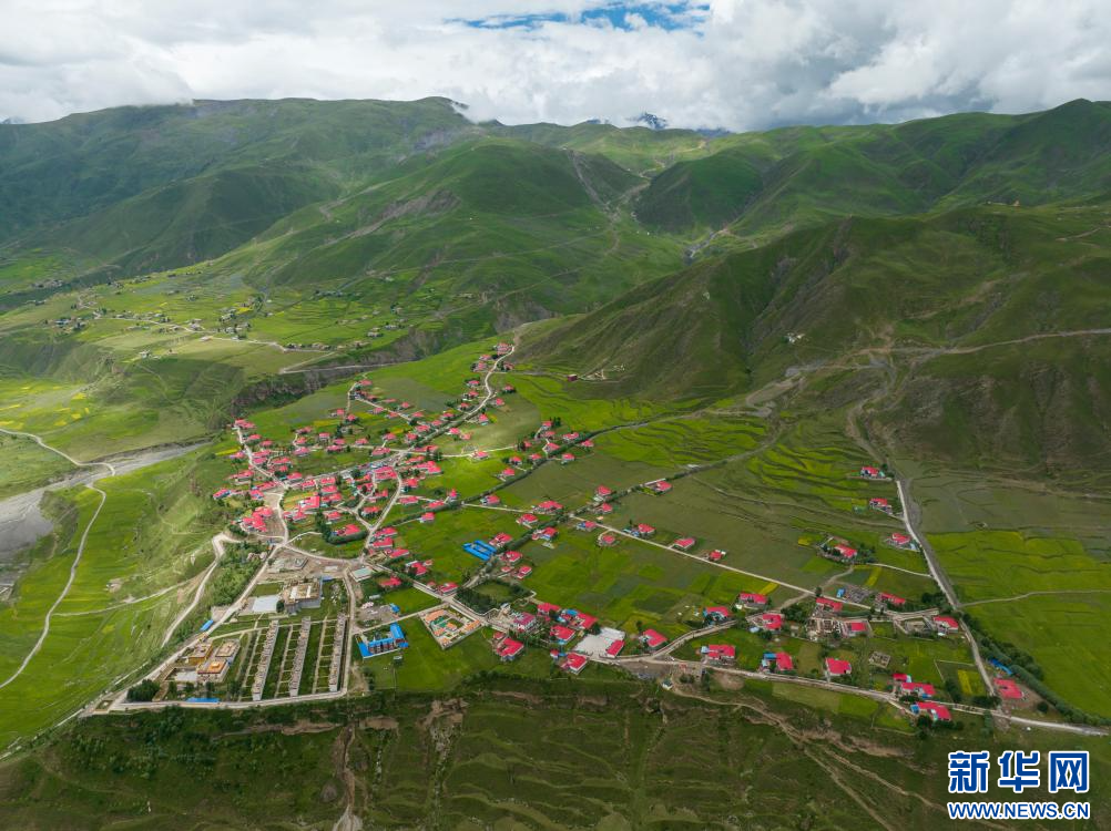 7月12日拍攝的西藏昌都市丁青縣尺犢鎮烏巴村(無人機照片)。新華網 旦增努布 攝