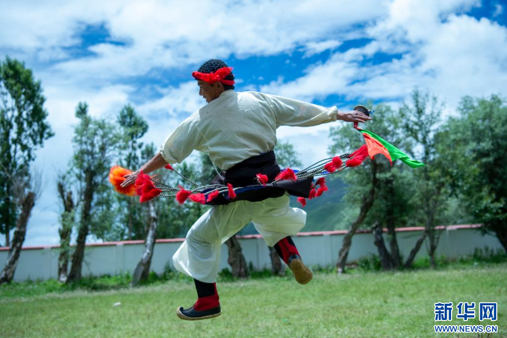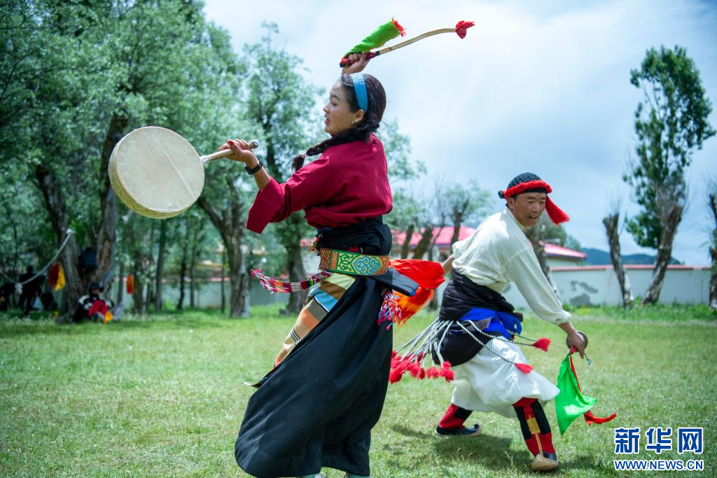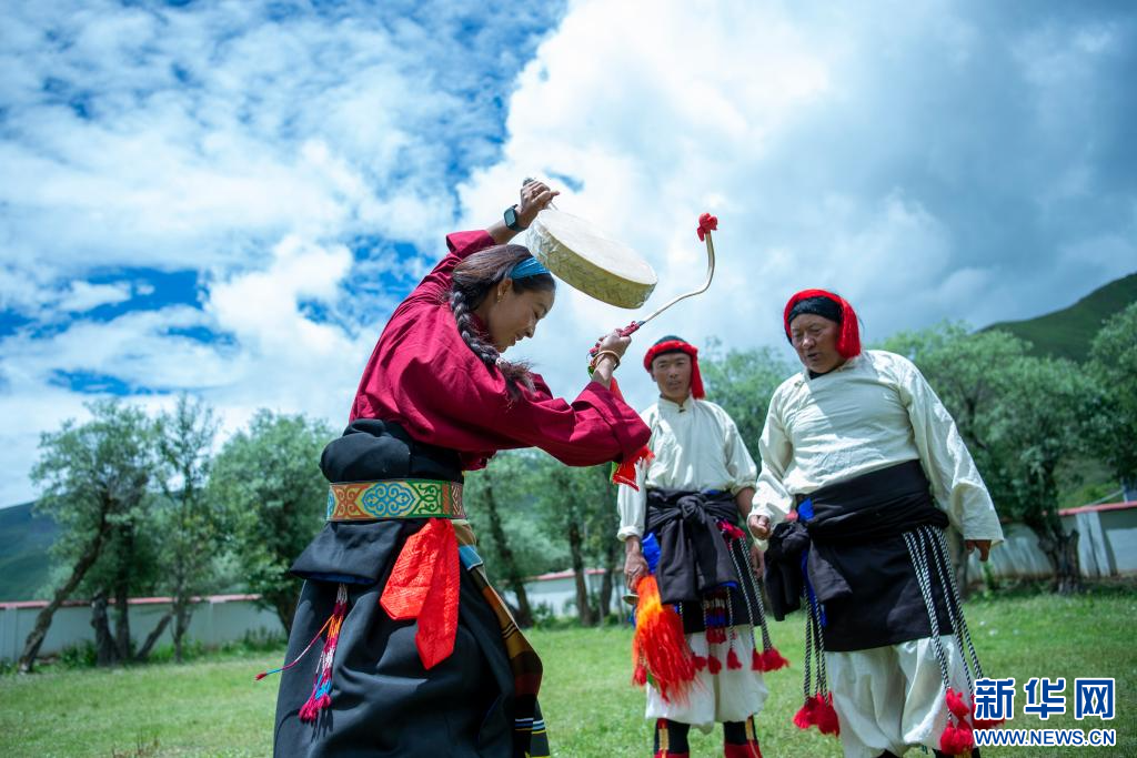 7月12日,西藏昌都市丁青縣尺犢鎮烏巴村文藝演出隊隊員在排練。 新華網 旦增努布 攝