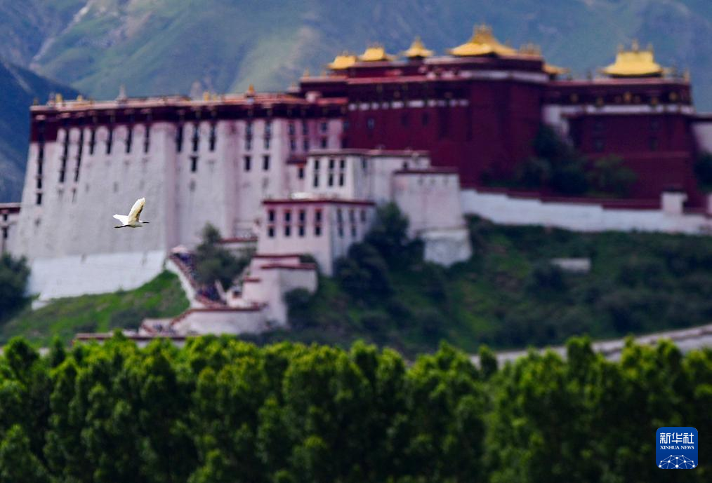 白鷺在拉魯濕地上空盤旋(7月23日攝)。新華社記者 張汝鋒 攝