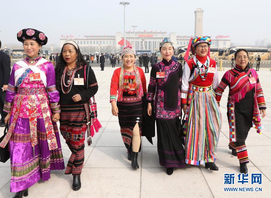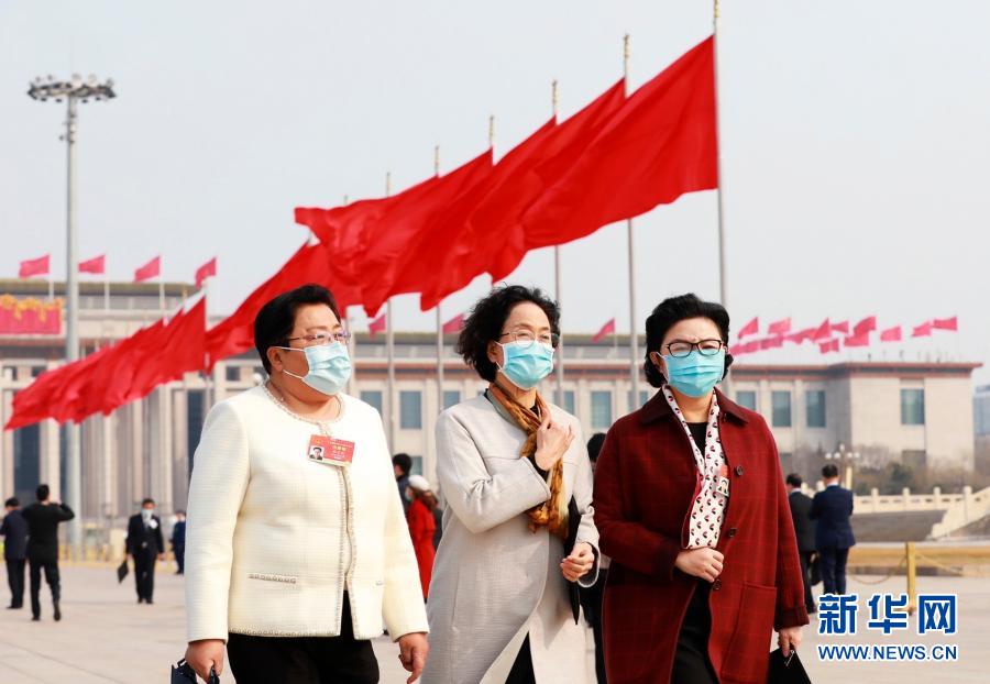 3月4日,中國人民政治協商會議第十三屆全國委員會第四次會議在北京人民大會堂開幕。這是女委員們走向會場。新華社記者 張玉薇 攝