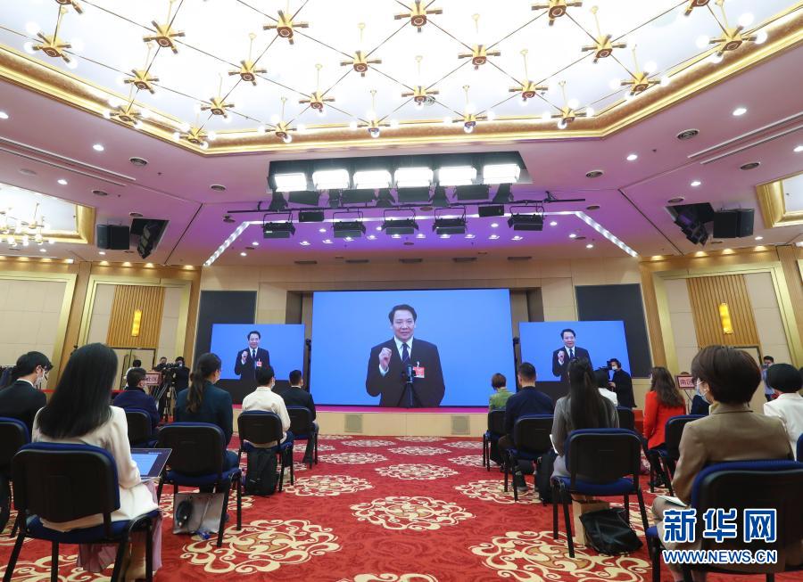 3月10日,全國政協(xié)十三屆四次會(huì)議第三場“委員通道”采訪活動(dòng)在北京人民大會(huì)堂新聞發(fā)布廳舉行。這是全國政協(xié)委員陳雨露通過網(wǎng)絡(luò)視頻方式接受媒體采訪。新華社記者 李賀 攝