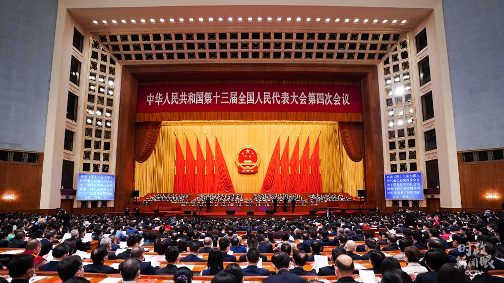十三屆全國人大四次會議表決通過關于“十四五”規劃綱要的決議。(總臺央視記者王哈男拍攝)