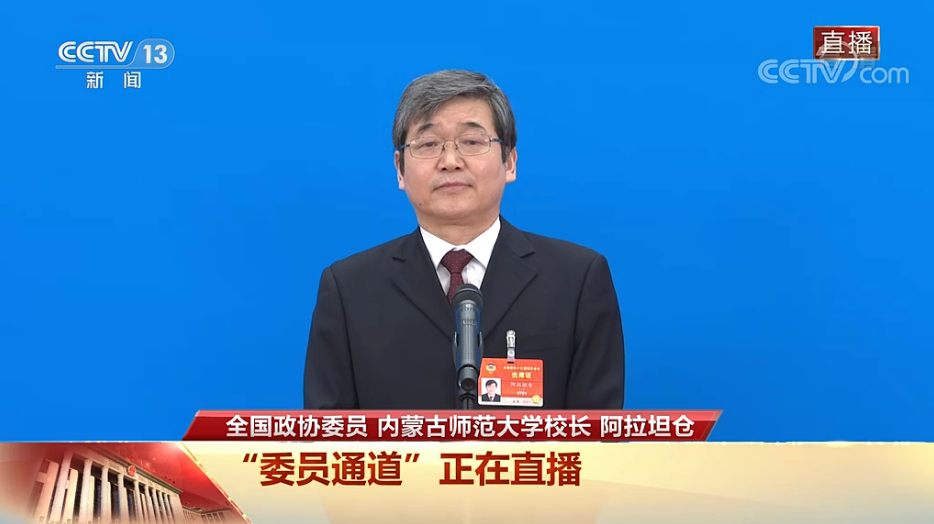 今天下午,在全國政協十三屆四次會議第三場“委員通道”上,全國政協委員、內蒙古師范大學黨委副書記、校長阿拉坦倉表示,如今的內蒙古,已從過去只有天蒼蒼、野茫茫、風吹草低見牛羊,發展到現在有繁華的城市、快速發展的經濟和飛馳的高鐵。在發展過程中,民族團結的理念深深地種在每一個內蒙古人的心里。