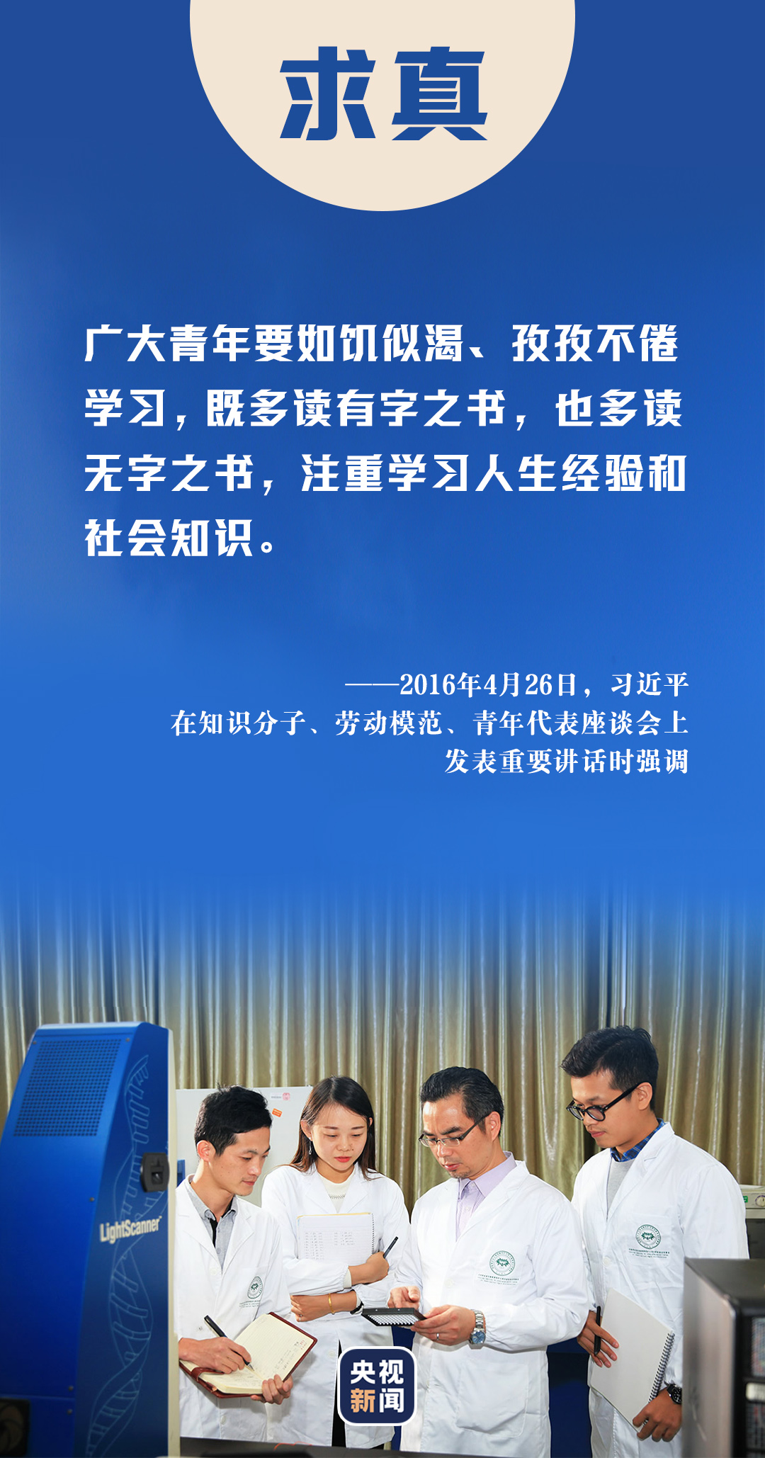 2013年五四青年節,習近平總書記來到中國航天科技集團公司中國空間技術研究院,與青年代表座談。總書記指出,廣大青年要堅持面向現代化、面向世界、面向未來,增強知識更新的緊迫感,如饑似渴學習,既扎實打牢基礎知識又及時更新知識,既刻苦鉆研理論又積極掌握技能,不斷提高與時代發展和事業要求相適應的素質和能力。