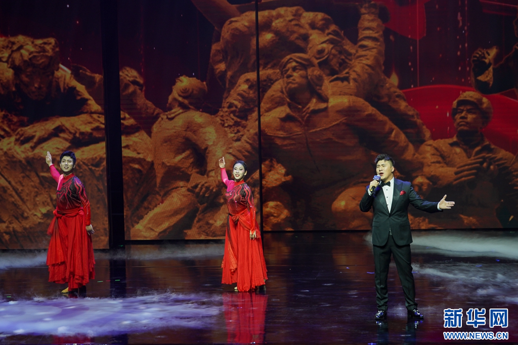 7月17日晚上,青年歌手佟雨軒(右)在演唱歌曲《追尋》(7月17日攝)。新華網 肖和勇 攝