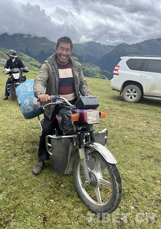 本就有些高原反應的我們,加上一路顛簸,以及各種急轉彎的剎車、爬陡坡時坐在摩托車上腰背受力過大,等到了夏季牧場,我們已經頭暈腦脹、走路有些發飄了。摩托車只能停在碎石路旁,我們隨索杰醫生一路往下走,雨后樹林里的泥土又濕又暄軟,索杰醫生經常走還有經驗,而我們只能深一腳淺一腳地踉蹌跟著,六七分鐘后到了牧民家中。