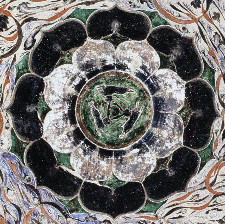 三只兔子競相追逐,兩兩共用一耳,形成了“三兔共耳”的獨(dú)特造型……在敦煌莫高窟,有20個洞窟出現(xiàn)了這個趣味圖案。